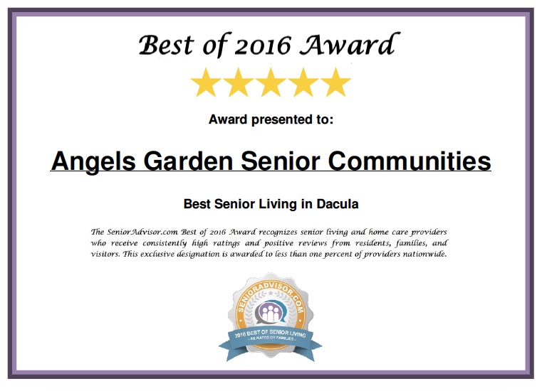 “I am very pleased with the care my mom is receiving at Angels Garden. They have met every expectation. I can lay my head down at night in peace knowing my mom is ok. They show that they really care and have compassion for the residents. & keep the family informed. I can now enjoy mother and daughter time. (Family of resident 2015)